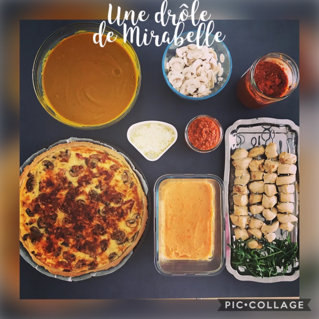 - Quiche lorraine : réchauffer au four à 180 degrés pendant une dizaine de minutes. Pendant ce temps, préparer une salade et une vinaigrette (vous pouvez aussi la préparer en avance le jour de votre batch :-).