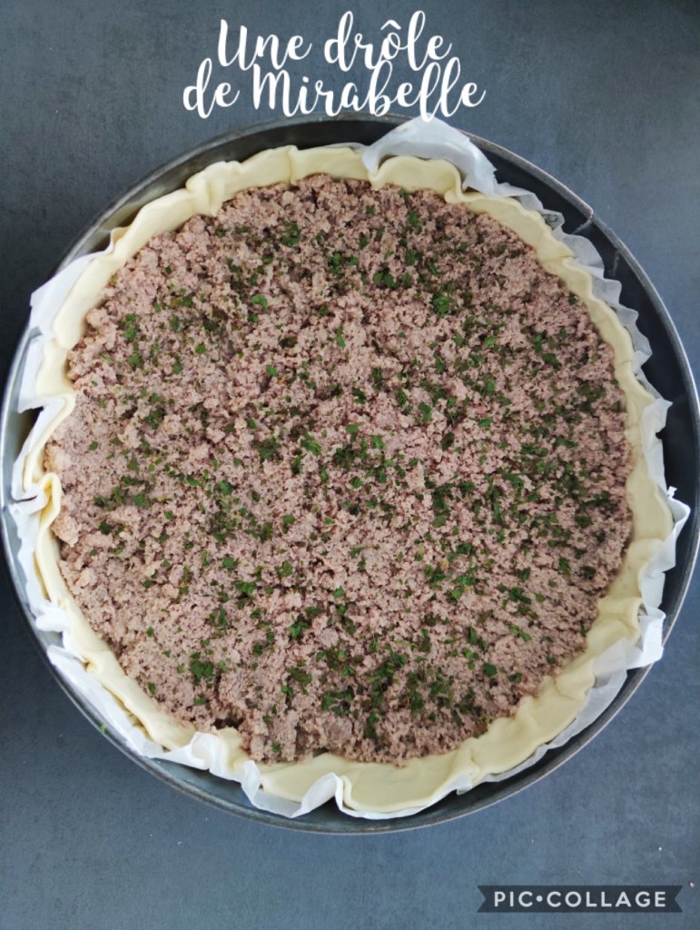 - Recouvrir le tout avec le second rouleau de pâte feuilletée. N.B : pensez à bien sceller les 2 pâtes feuilletées entre elles.