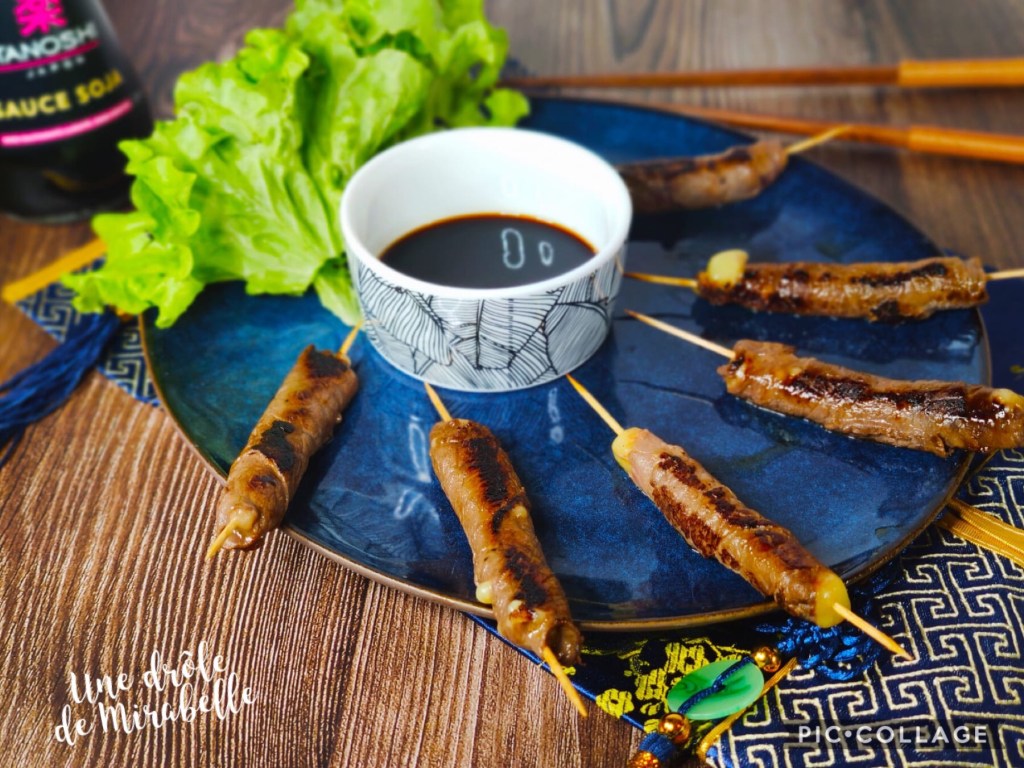 Mon mari raffole des petites brochettes de bœuf au fromage des restaurants japonais ! Sauf qu’à l’heure où j’écris cet article, les restaurants sont encore fermés en Ile-De-France 😔. Pour lui faire plaisir, j’ai donc improvisé ces petites brochettes avec les ingrédients que j’avais sous la main. Résultat : il a adoré ! Et pour ne rien gâcher, elles sont super simples à préparer !