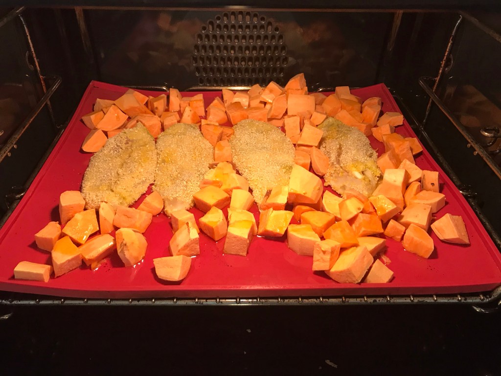 Encore un plat parfait! J’ai rajouté quelques pommes de terre avec les patates douces, et j’ai fait la panure au parmesan. Un regal 😍