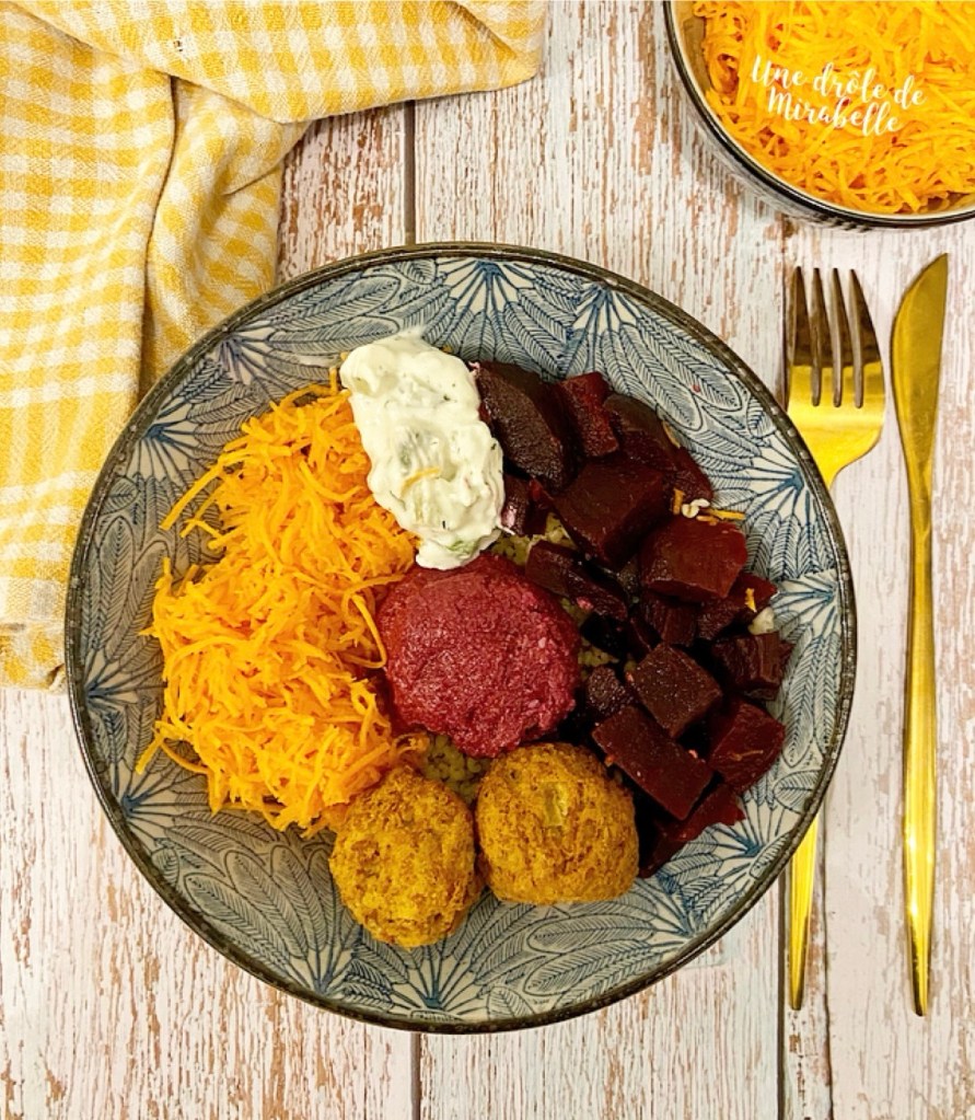 3 commentaires sur « Buddha bowl aux falafels, houmous de betteraves et crudités »