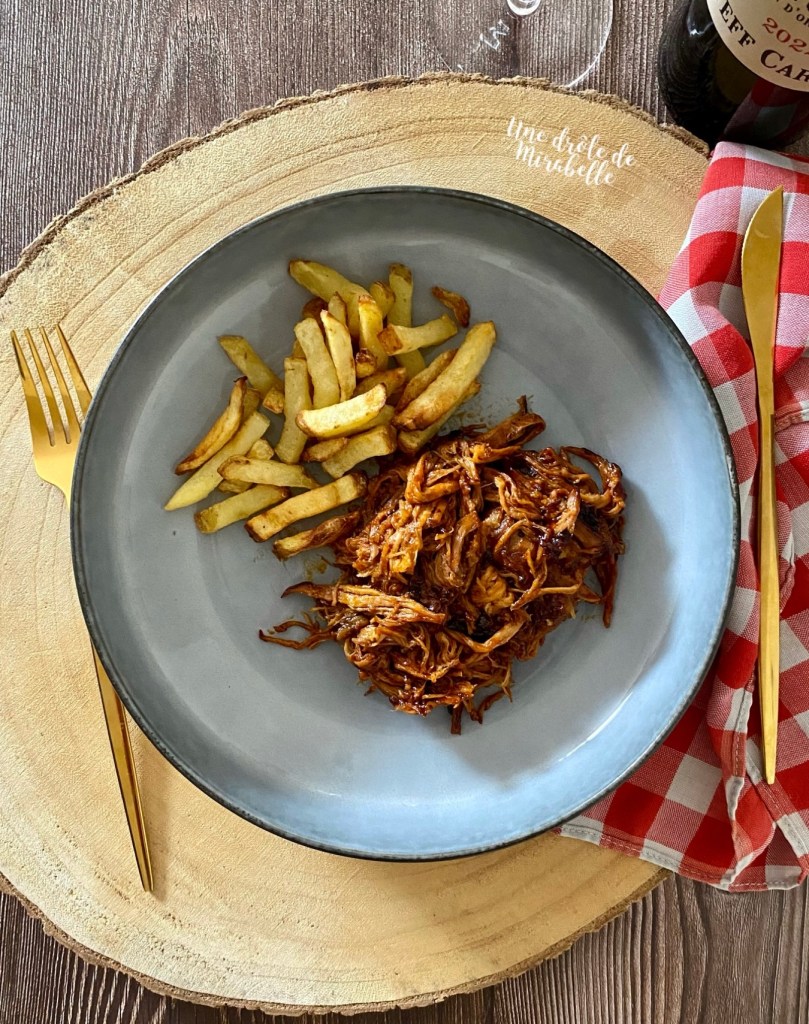 Le pulled pork est une recette américaine sucrée-salée dont on entend souvent parler : vous ne pouvez pas être passé à côté ! Le principe est simple : une viande de porc confite au four en cocotte dans une sauce sucrée-salée pendant… 4h30 ! Une cuisson lente et douce mais qui, je vous l’assure, en vaut vraiment la peine ! Le résultat ? Une viande qui s’effiloche à la fourchette et que vous pouvez déguster telle quelle ou en sandwich. Je vous propose ici une version burger, mais vous pouvez aussi utiliser du pain pita par exemple ! Côté recette, on en trouve des tas sur le net, et c’est sur celle de Papilles et Pupilles que j’ai jeté mon dévolu. Résultat : à tomber ! J’ai également vu passer des recettes au Cookeo, mais j’ai choisi d’opter pour une cuisson traditionnelle pour cette première tentative ! Et je pense honnêtement rester sur ce mode de cuisson !