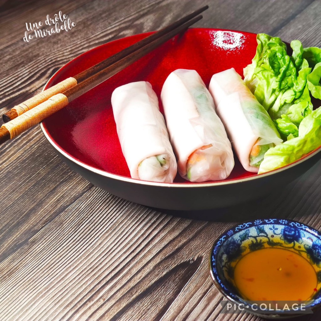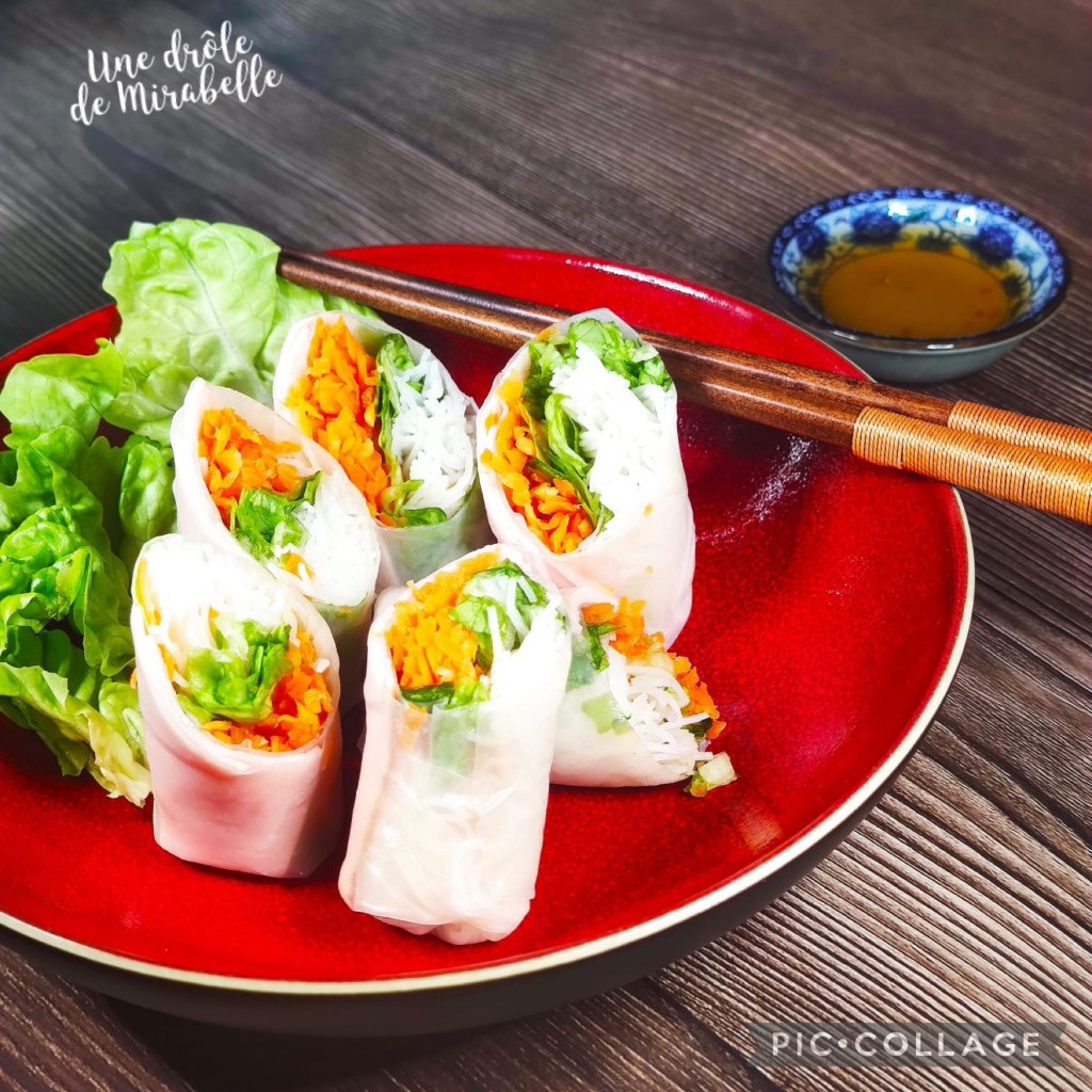Envie de fraîcheur et de légèreté ? Croquez dans ces rouleaux de printemps made in Mirabelle ! C’est tellement simple à réaliser que vous n’aurez plus jamais envie d’en acheter ! Personnellement, je ne met pas de crevettes… tout simplement car j’en ai rarement sous la main quand l’envie me prend d’en réaliser 😉 Mais vous pouvez bien entendu en ajouter !