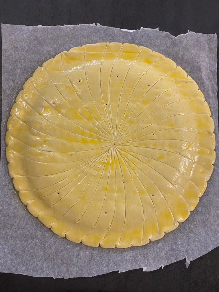 - Avec un pinceau, dorer la galette avec le mélange à base d’œufs et d’eau.