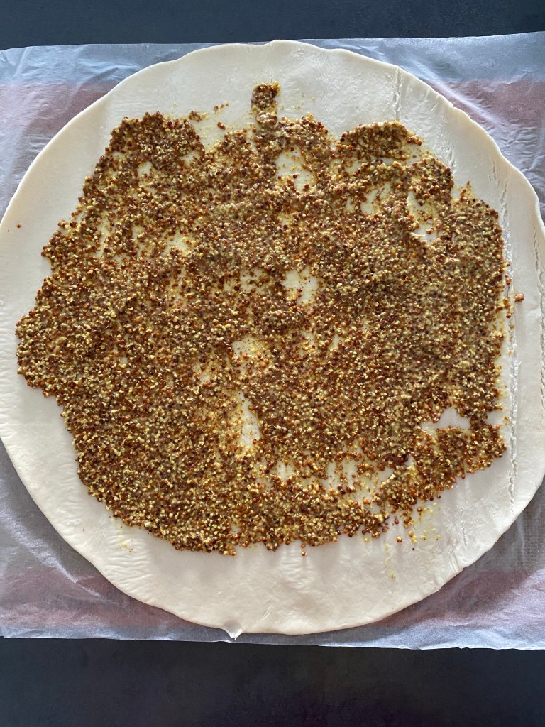 Étaler une couche de moutarde sur l’ensemble de la pâte.